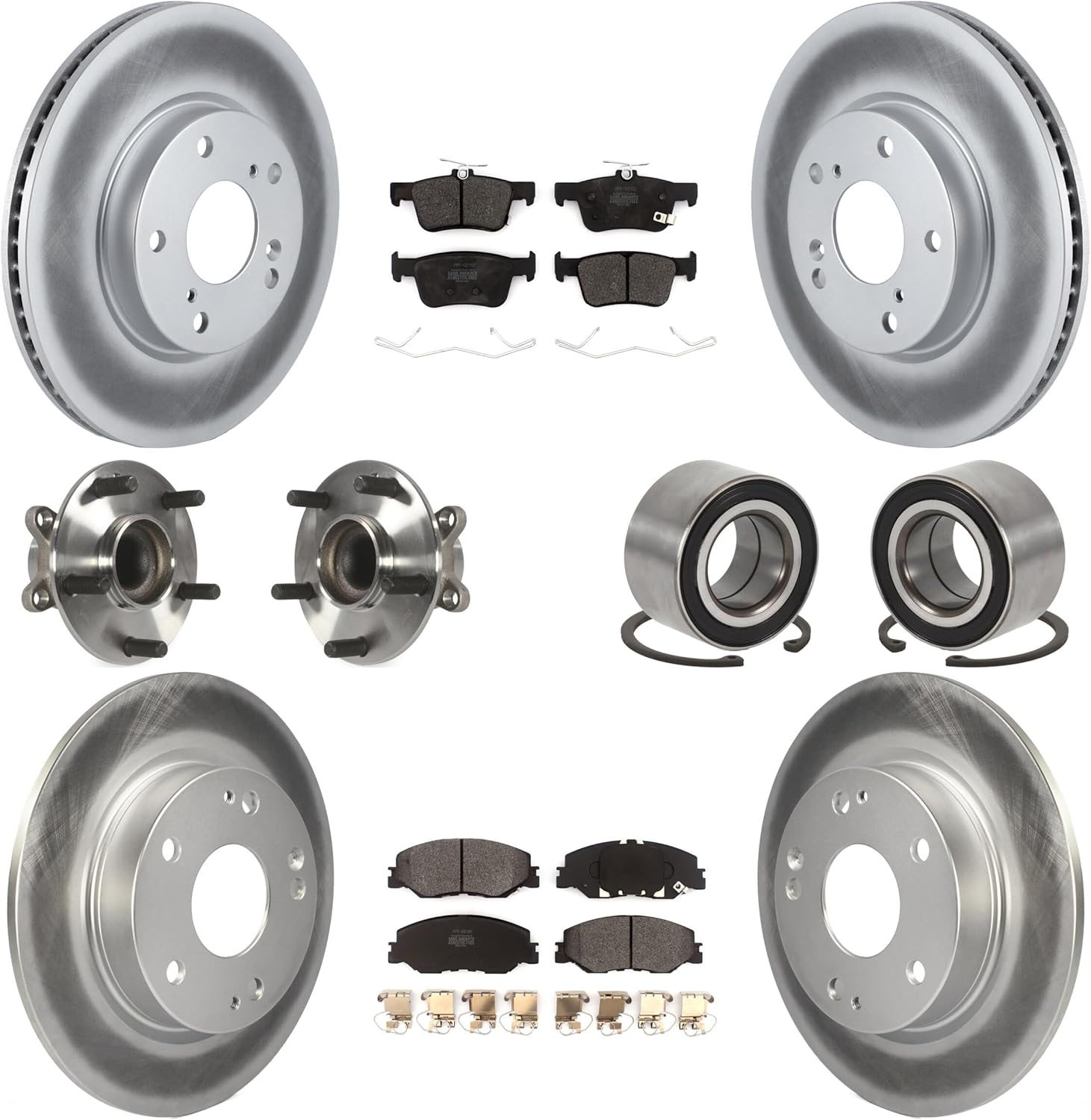 Front Rear Wheel Hub Bearings Assembly Coated Disc Brake Rotors and Semi-Metallic Pads Kit Review